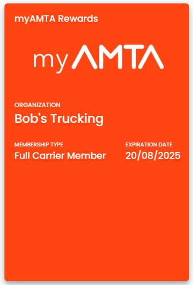 All AMTA Supplier Members, Full Carrier Members, and Elite Members in good standing will receive a digital myAMTA Rewards Card.